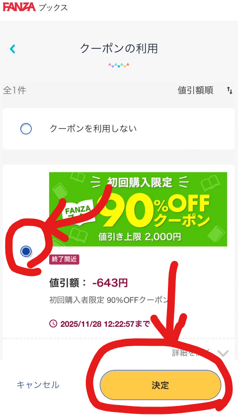 ⑬90%オフクーポンをタップして、決定ボタンをタップする