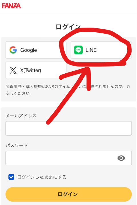 ⑤Lineのアイコンをタップする。(他Xやgoogleアカウントでも可能です。)