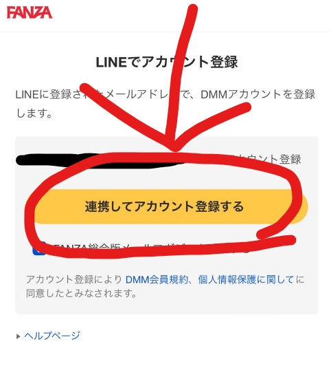 ⑦FANZAのページに戻ったら、「連携してアカウント登録する」ボタンをタップ。